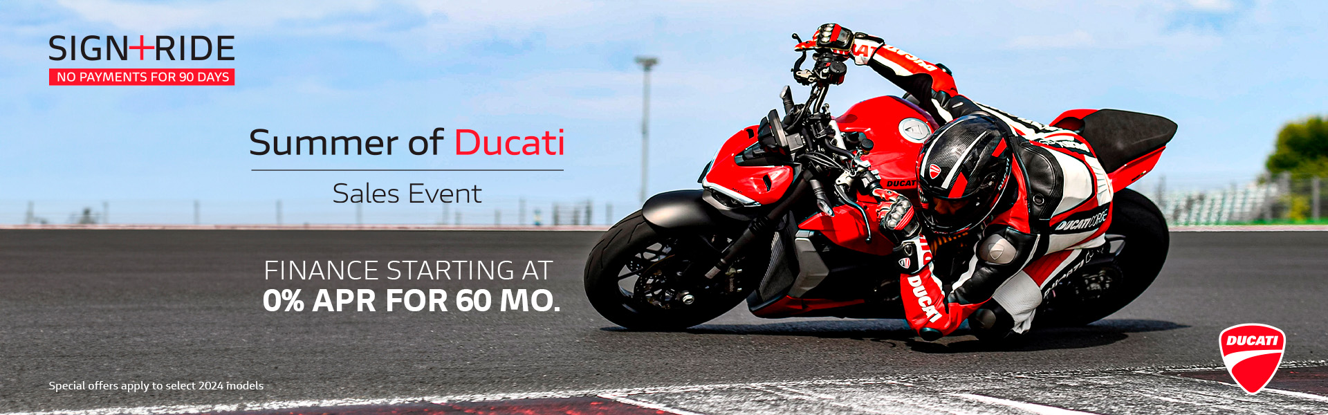 Enjoy no payments until 2026 on select models with Ducati Traditional Financing. Discover our current offers below.