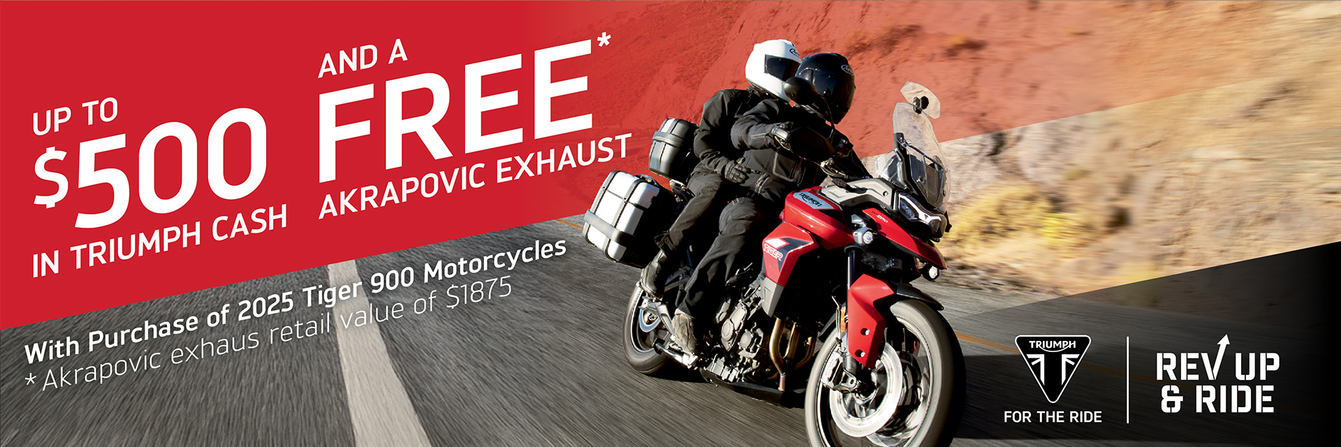 The Rev Up & Ride promotion offers robust incentives for riders to start their riding season on a new Triumph motorcycle, with cash offers and low financing rates.